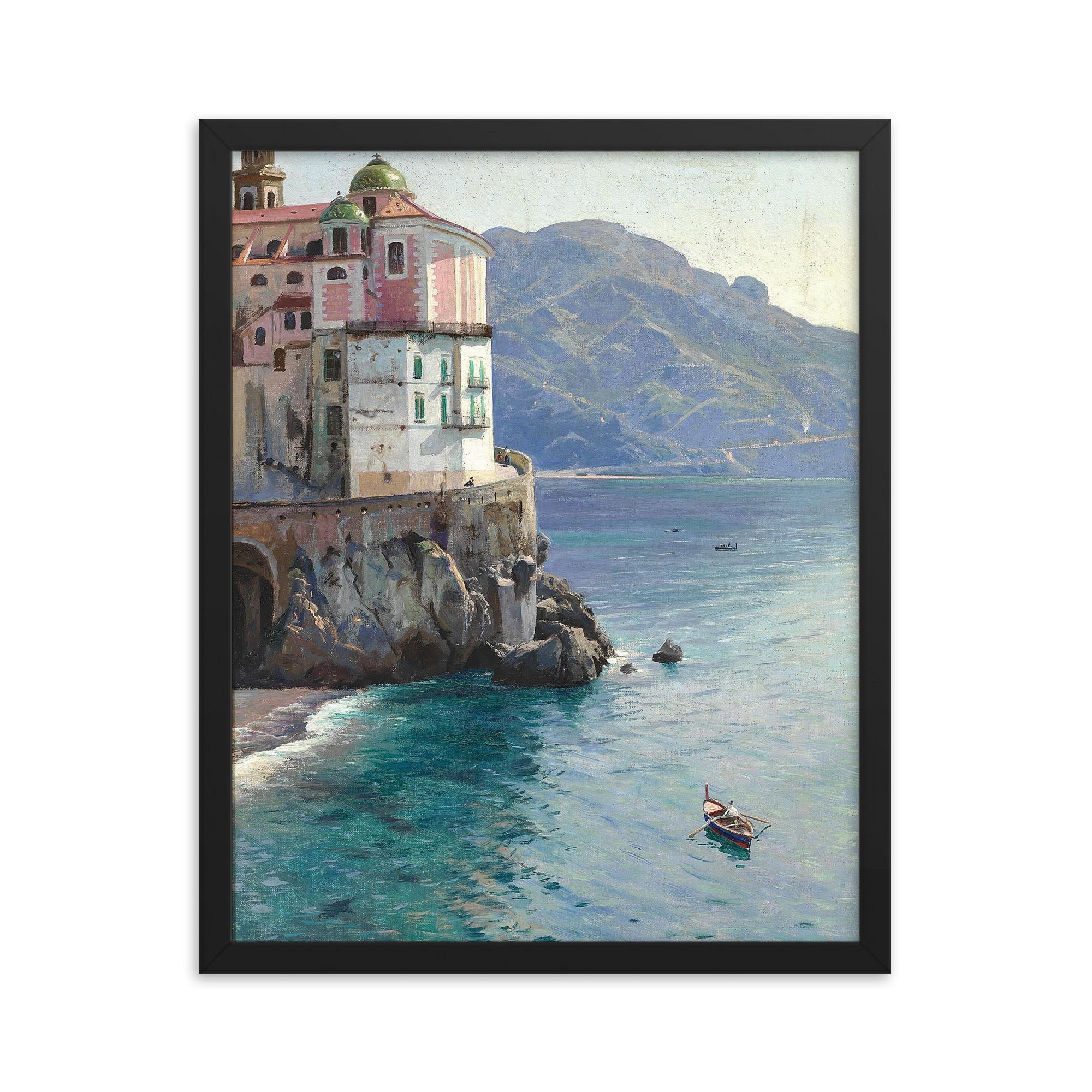 Transport yourself to Italy’s enchanting Amalfi Coast with this exquisite framed print of *View of the Atrani Coast Near Amalfi, Italy* by Peder Mork Mønsted (1925). Now, you can bring the timeless allure and storied beauty of Southern Italy right into your home or office—no passport required.