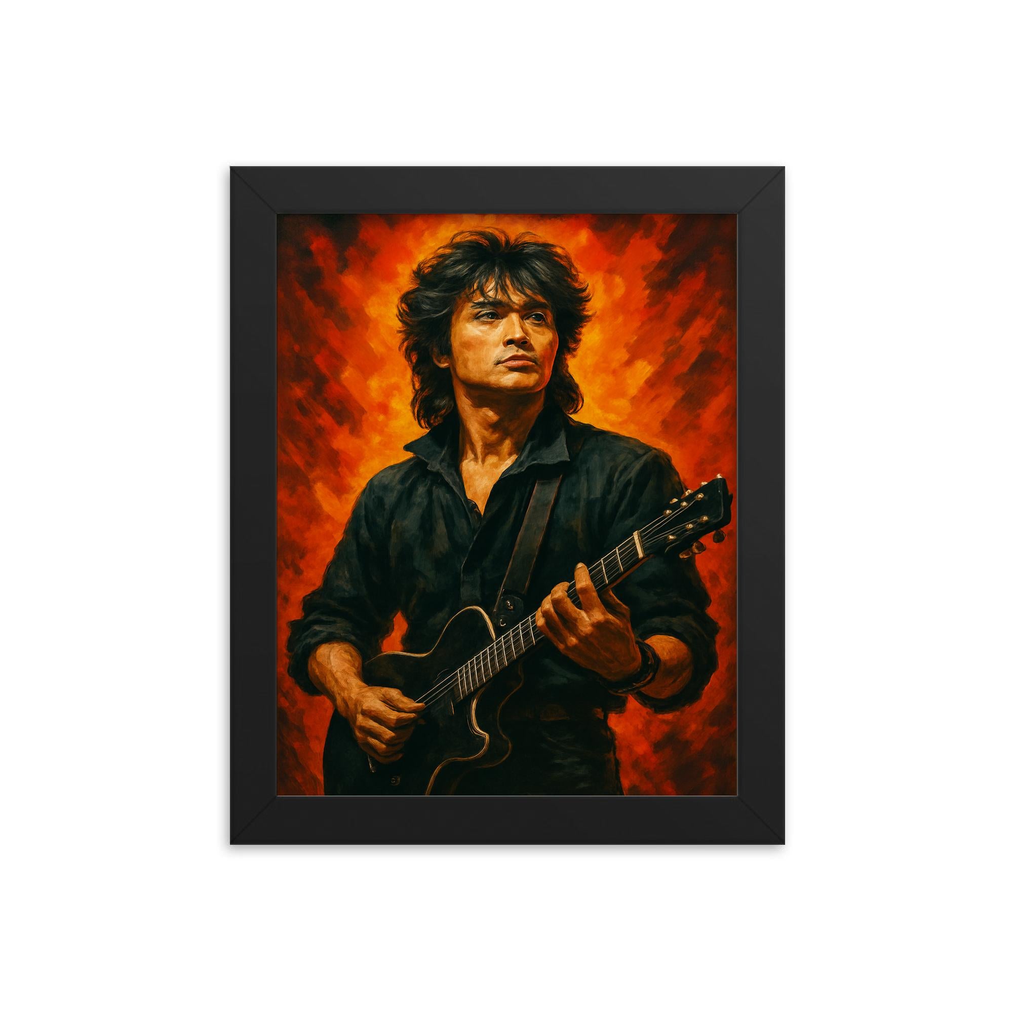 Elevate your space with this stunning framed print of Viktor Tsoi, the legendary icon whose music and spirit continue to inspire generations.