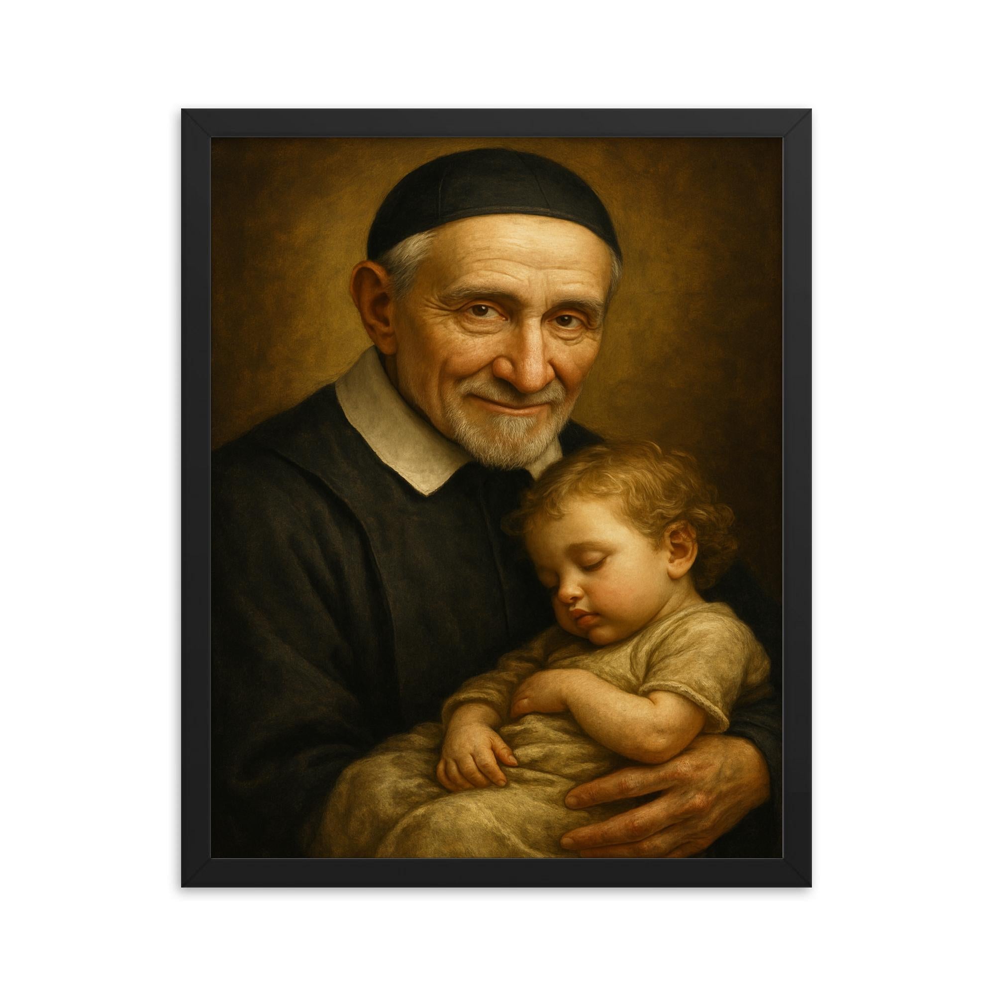 Elevate your space with timeless inspiration through this exquisite framed print of Vincent de Paul.