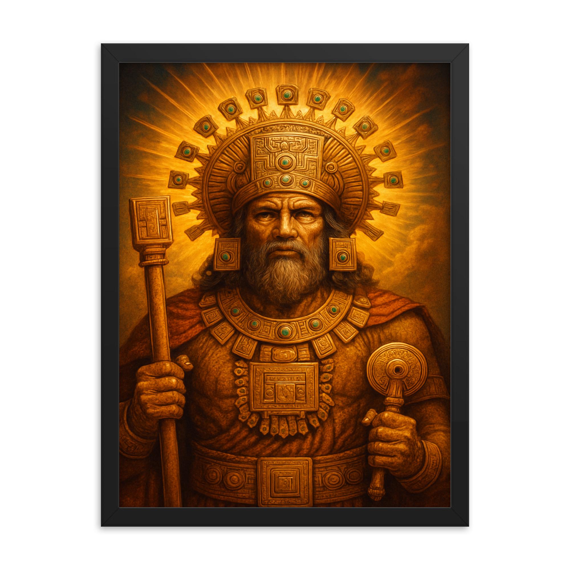 Bring timeless Andean mystique into your space with this stunning Viracocha Inca framed print—an artful tribute to one of the most revered deities of ancient Incan culture.