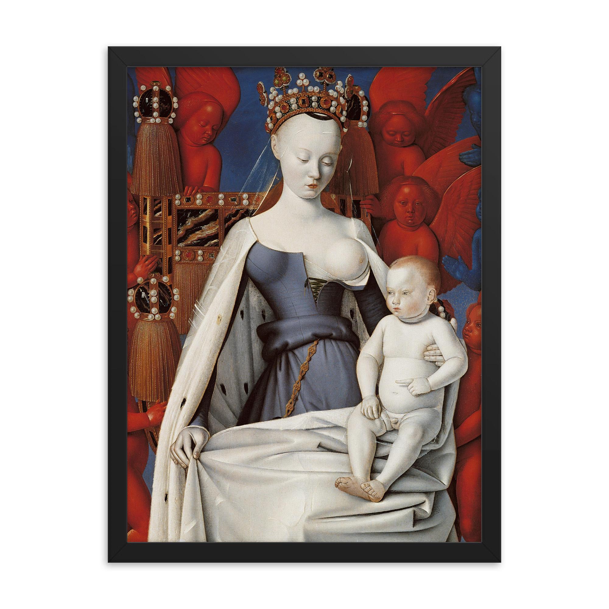 Transform your space with a masterpiece that has captivated art lovers for centuries—introducing our exquisite framed print of "Virgin and Child Surrounded by Angels" by Jean Fouquet, a celebrated Renaissance treasure from 1450.
