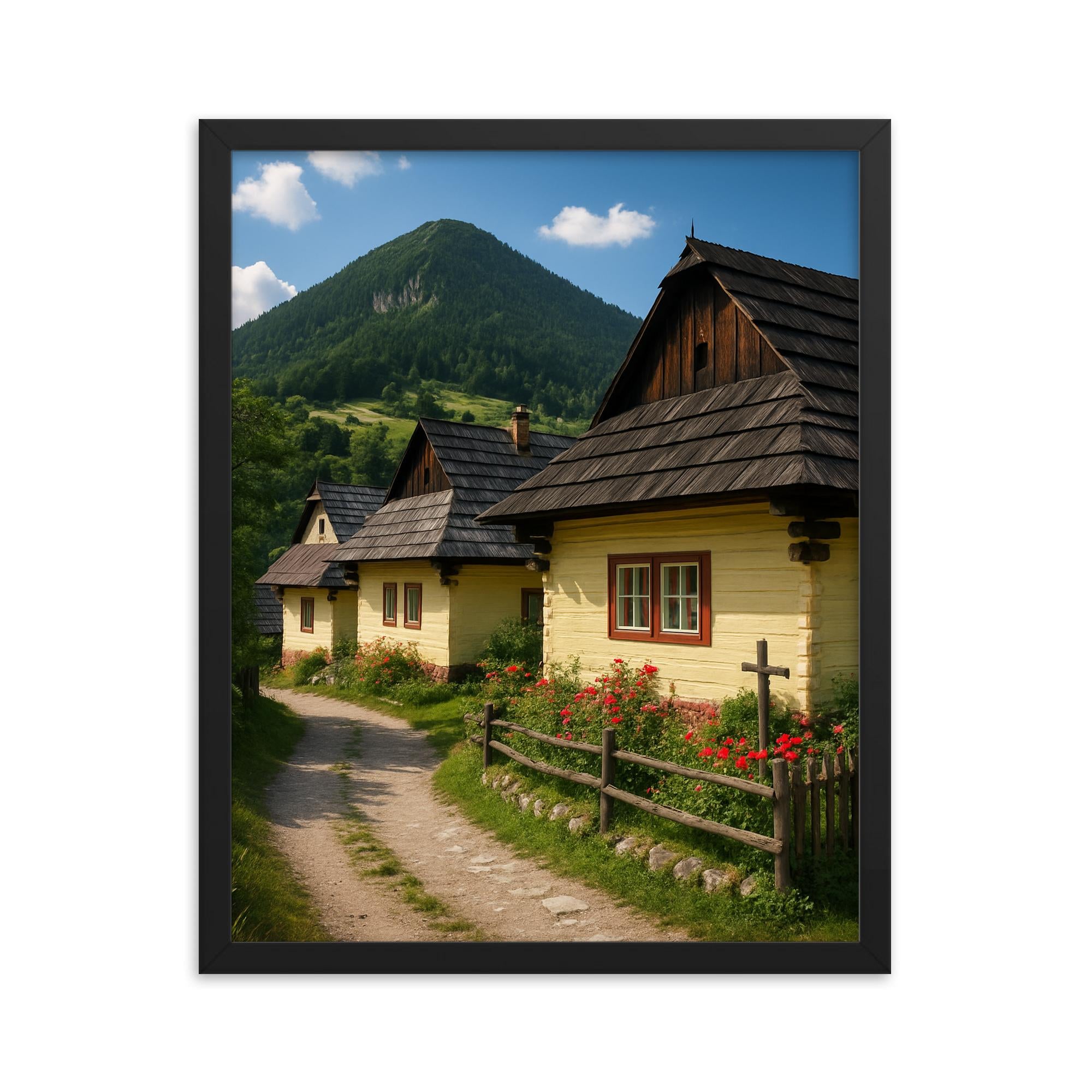 Discover the timeless charm of Vlkolínec, Slovakia, beautifully captured in this exquisite framed print.