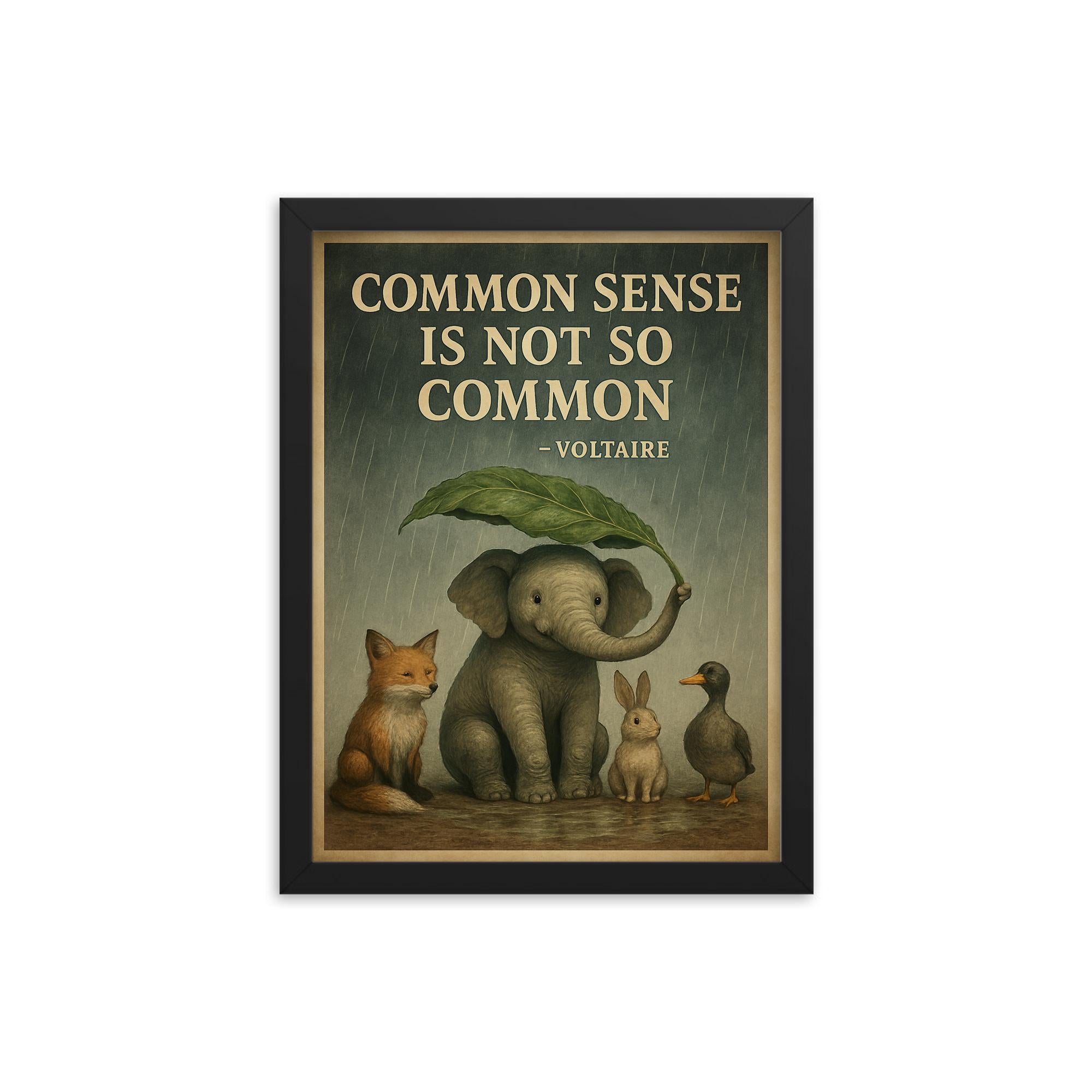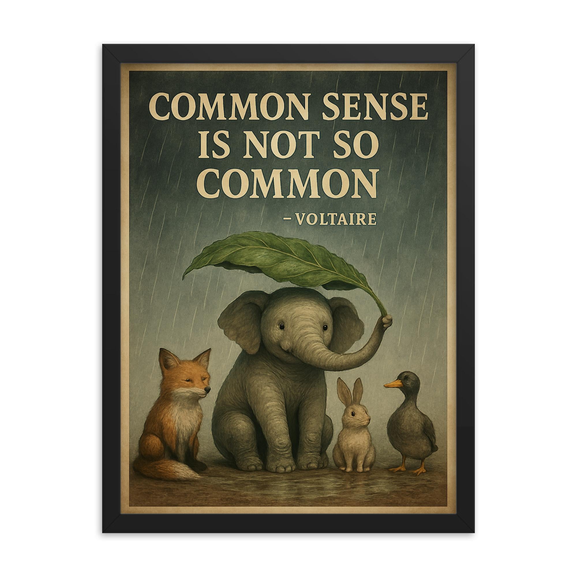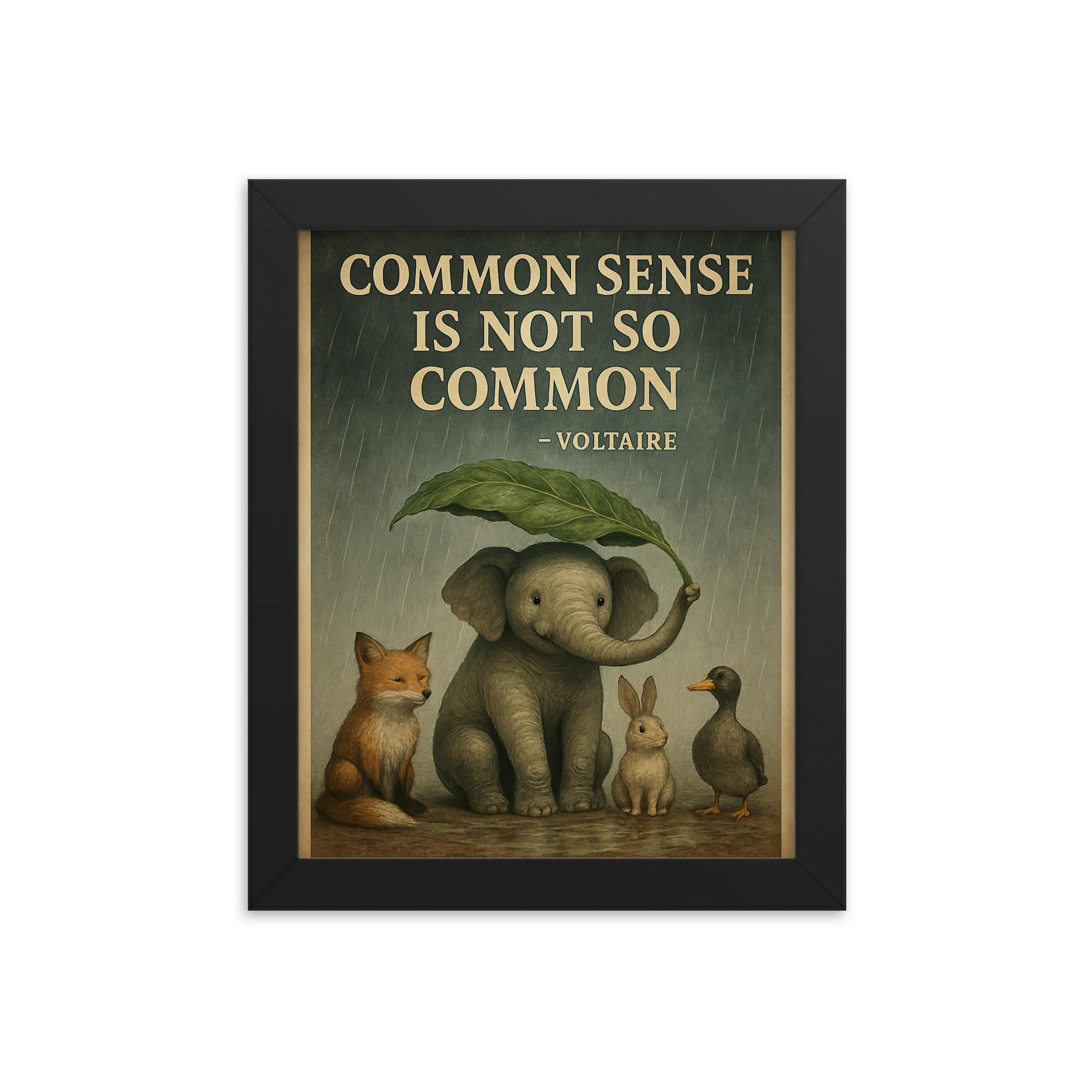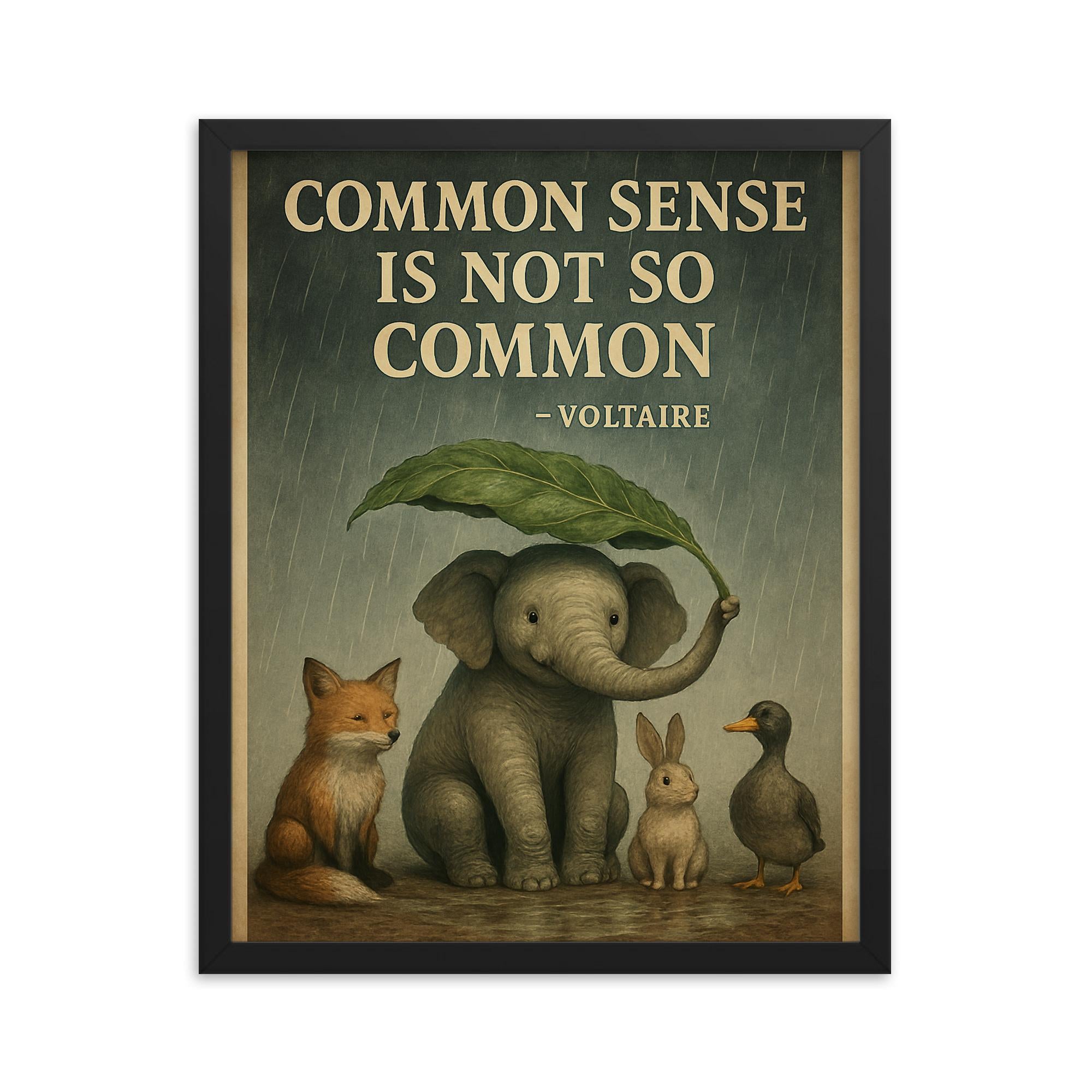 Elevate your space—and your spirit—with our Framed Print featuring an inspiring Voltaire quote that celebrates common sense, kindness, and hope for every animal in need. This powerful wall art captures a heartwarming moment: the wisdom of Voltaire paired with imagery drawn from an animal shelter scene on a rainy day, reminding us all of compassion, resilience, and the beauty of giving.