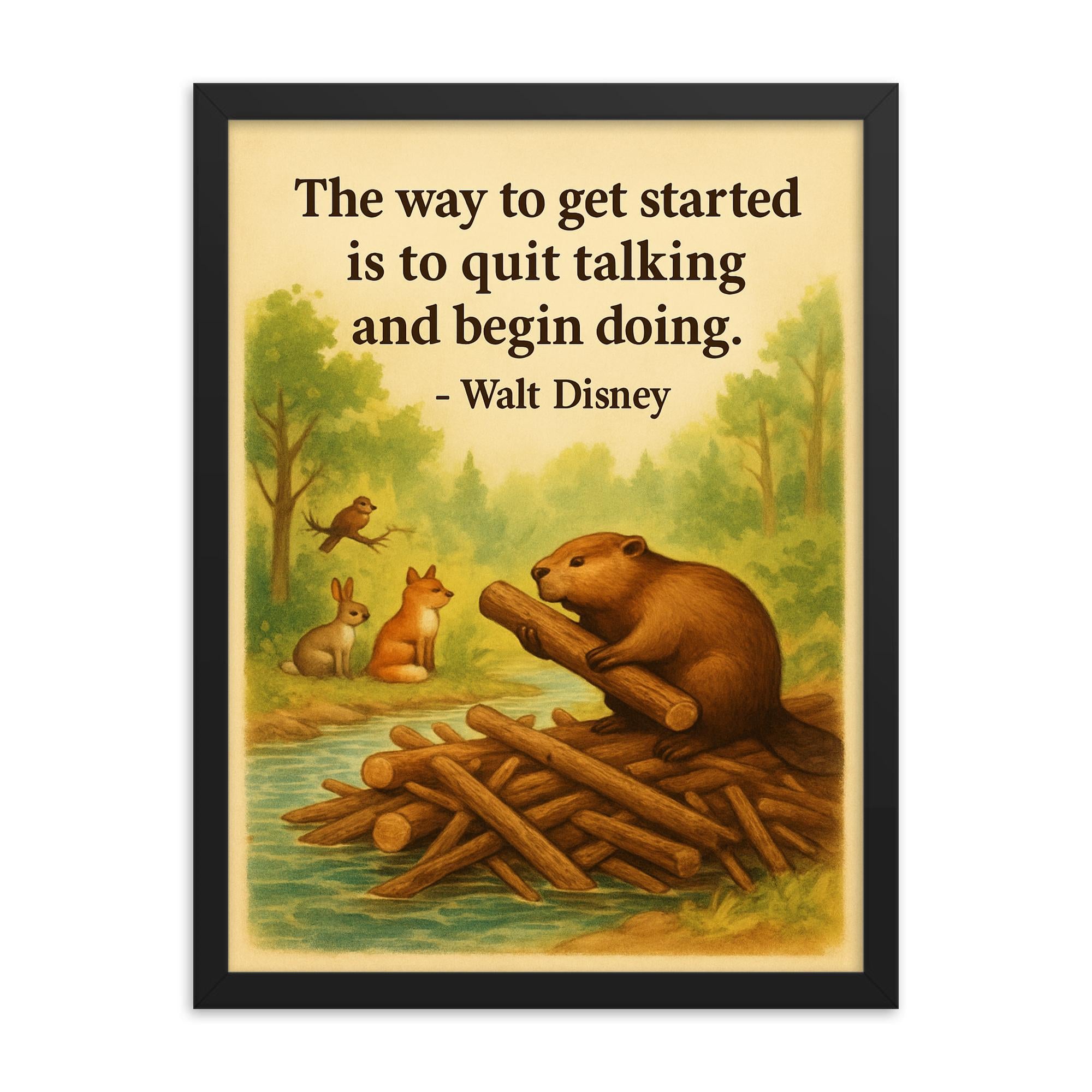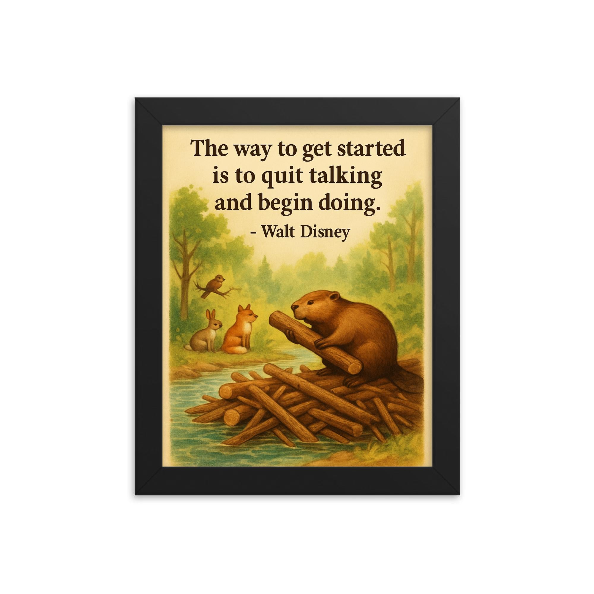 Walt Disney Beaver Building Dam Framed Print – Motivational Wall Art, Inspirational Quote Decor, Unique Gift for Home Office