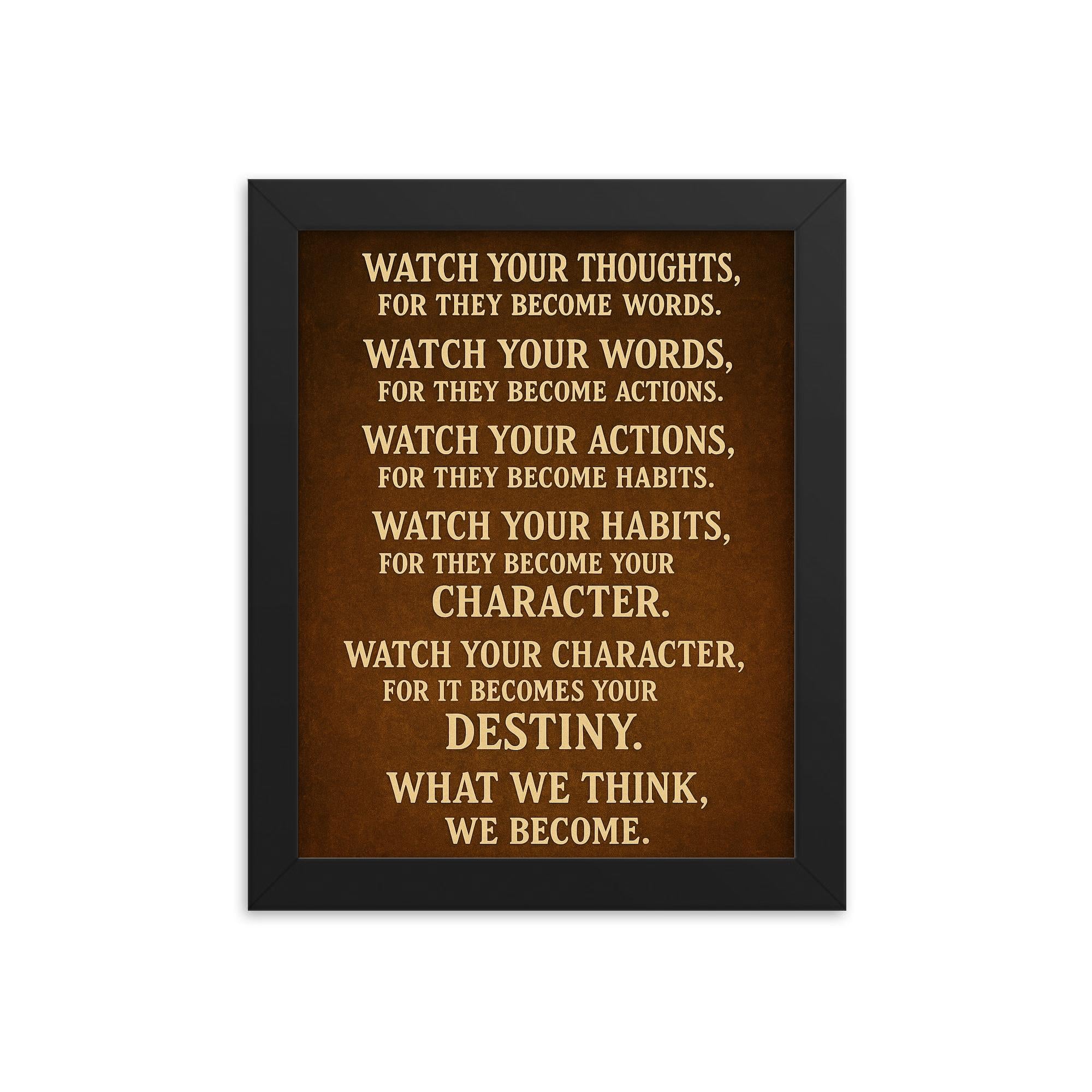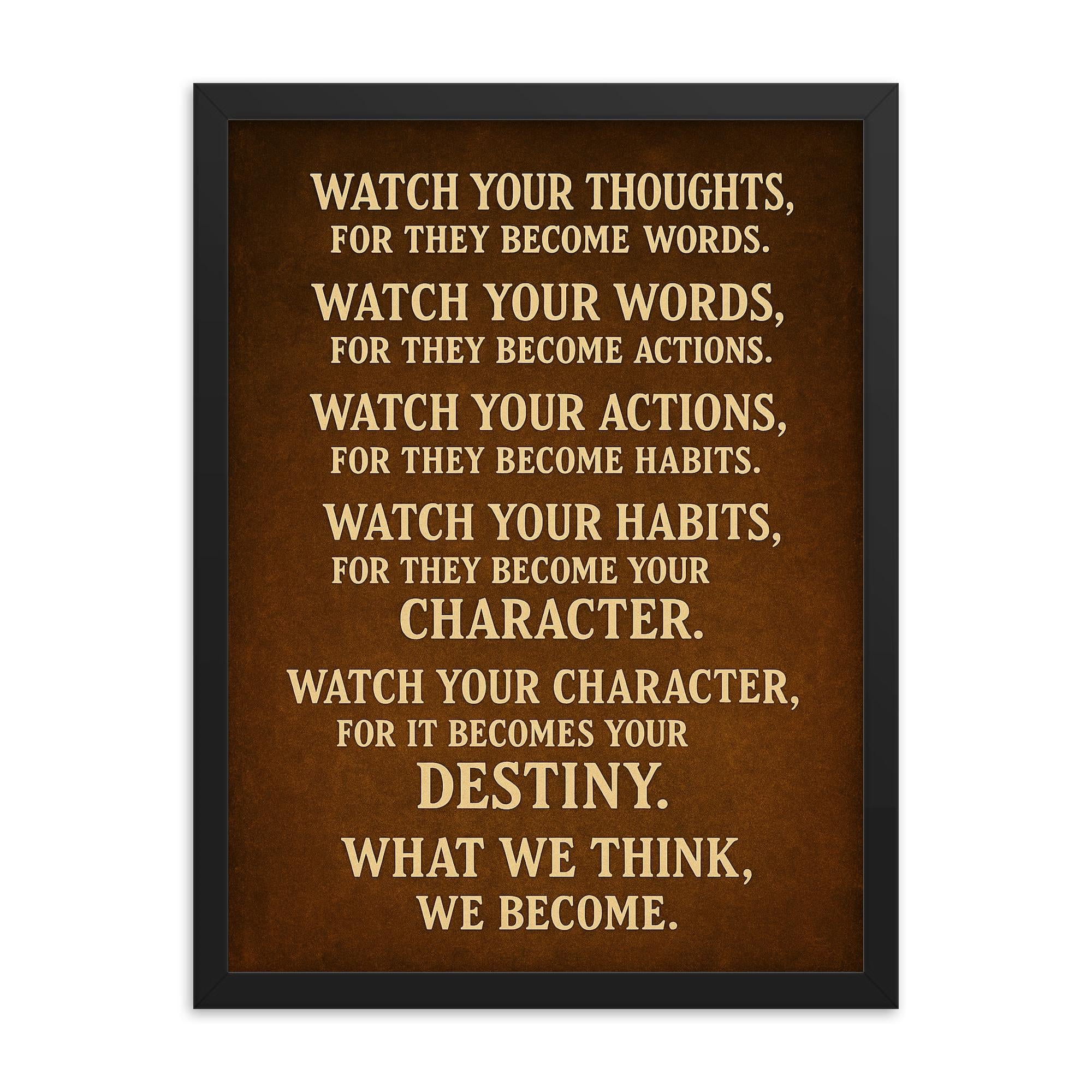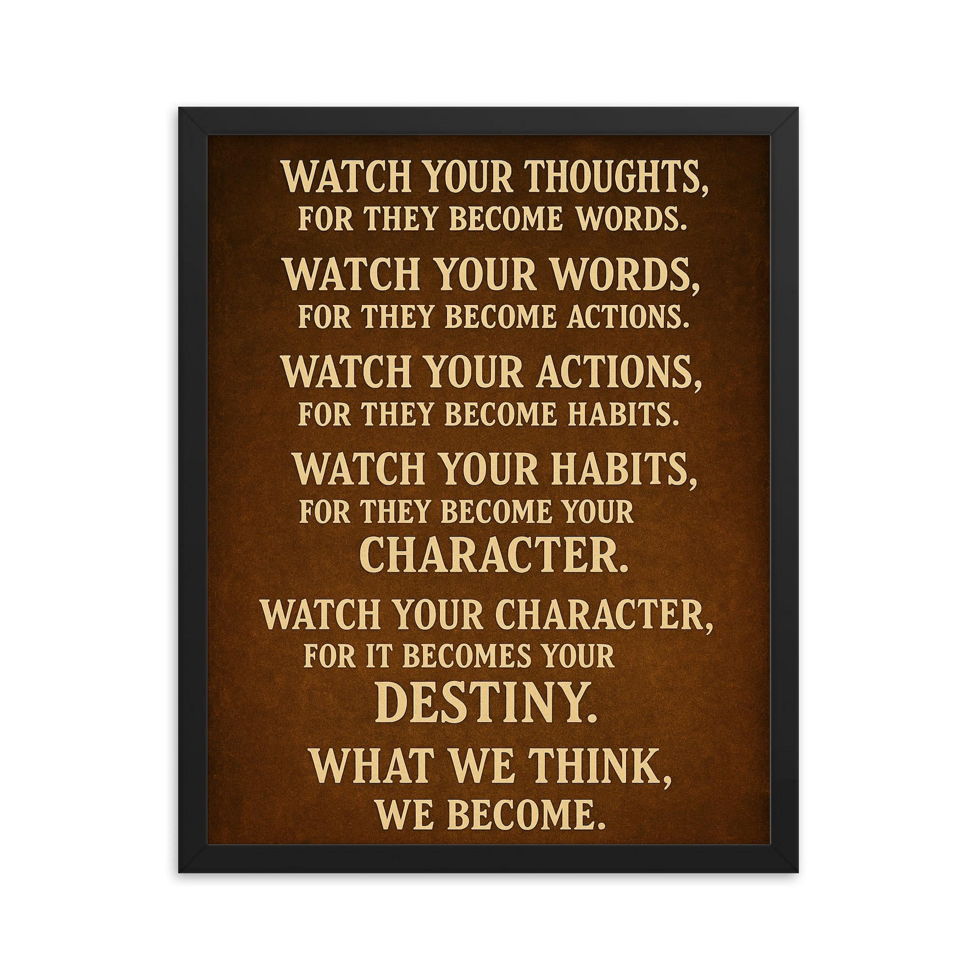 This framed print of the motivational quote Watch your thoughts for they become words is more than just decor—it's a daily reminder to cultivate positivity and intentionality in your life. Perfect for your home office, living room, or any space where encouragement fuels your ambition.
