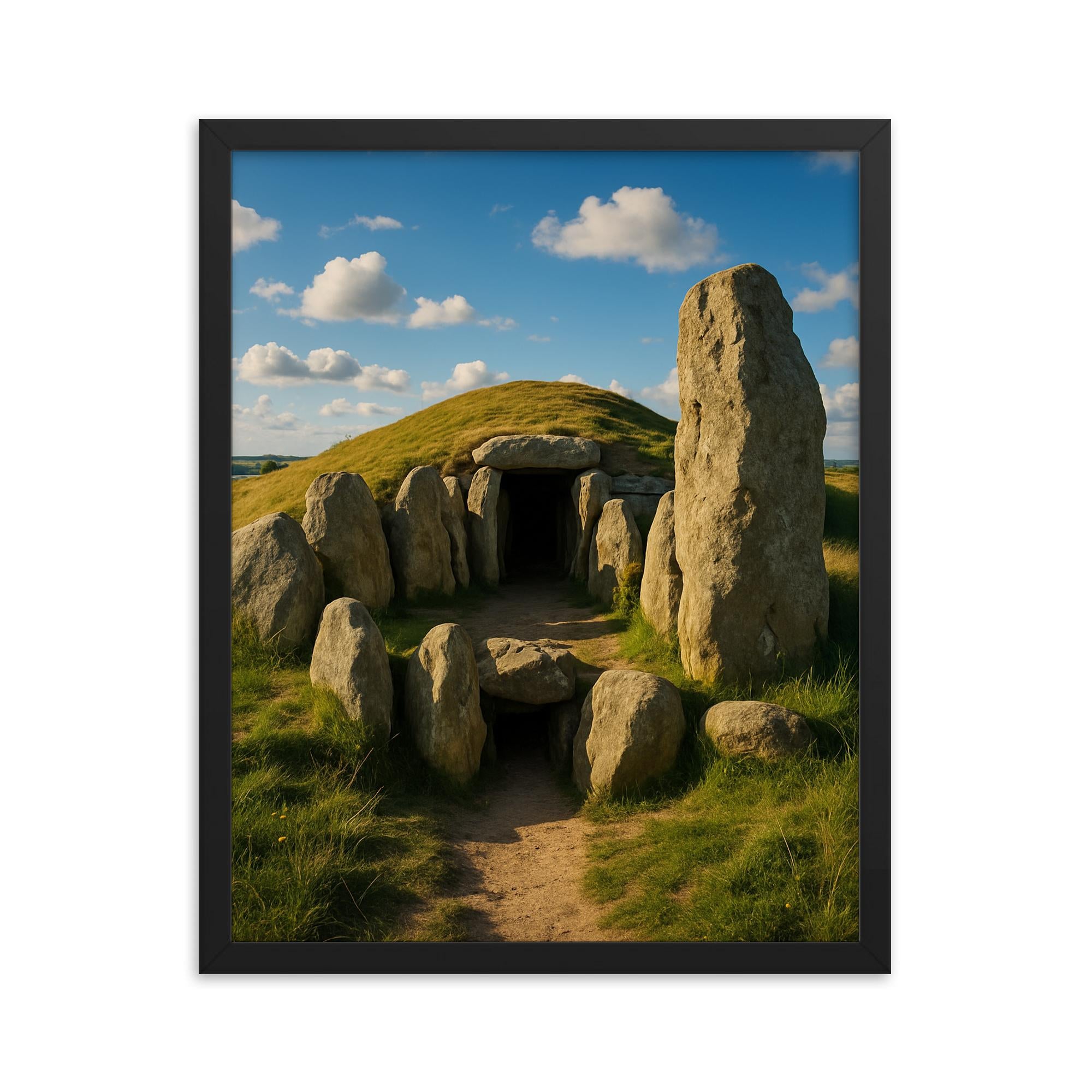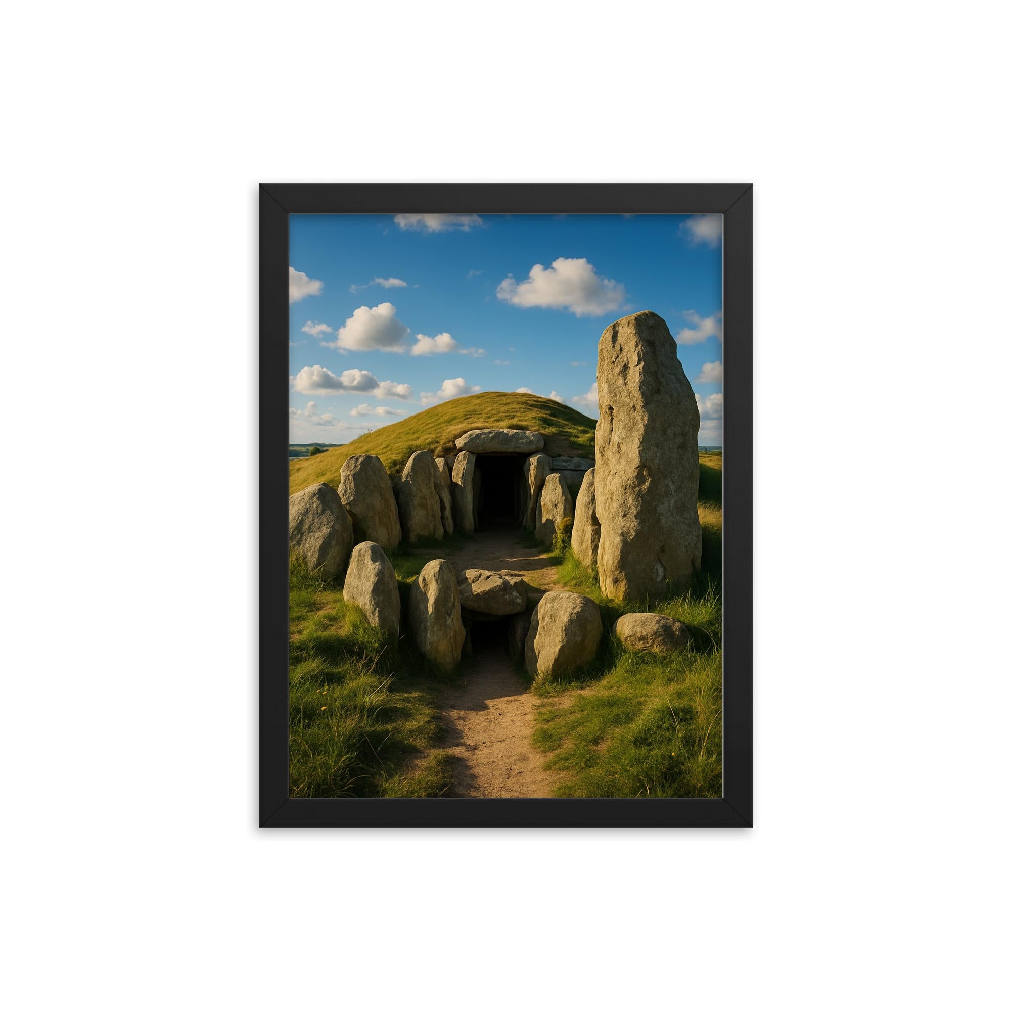 West Kennet Long Barrow England Framed Print – Historic Neolithic Monument Wall Art, Authentic British Heritage Home Decor