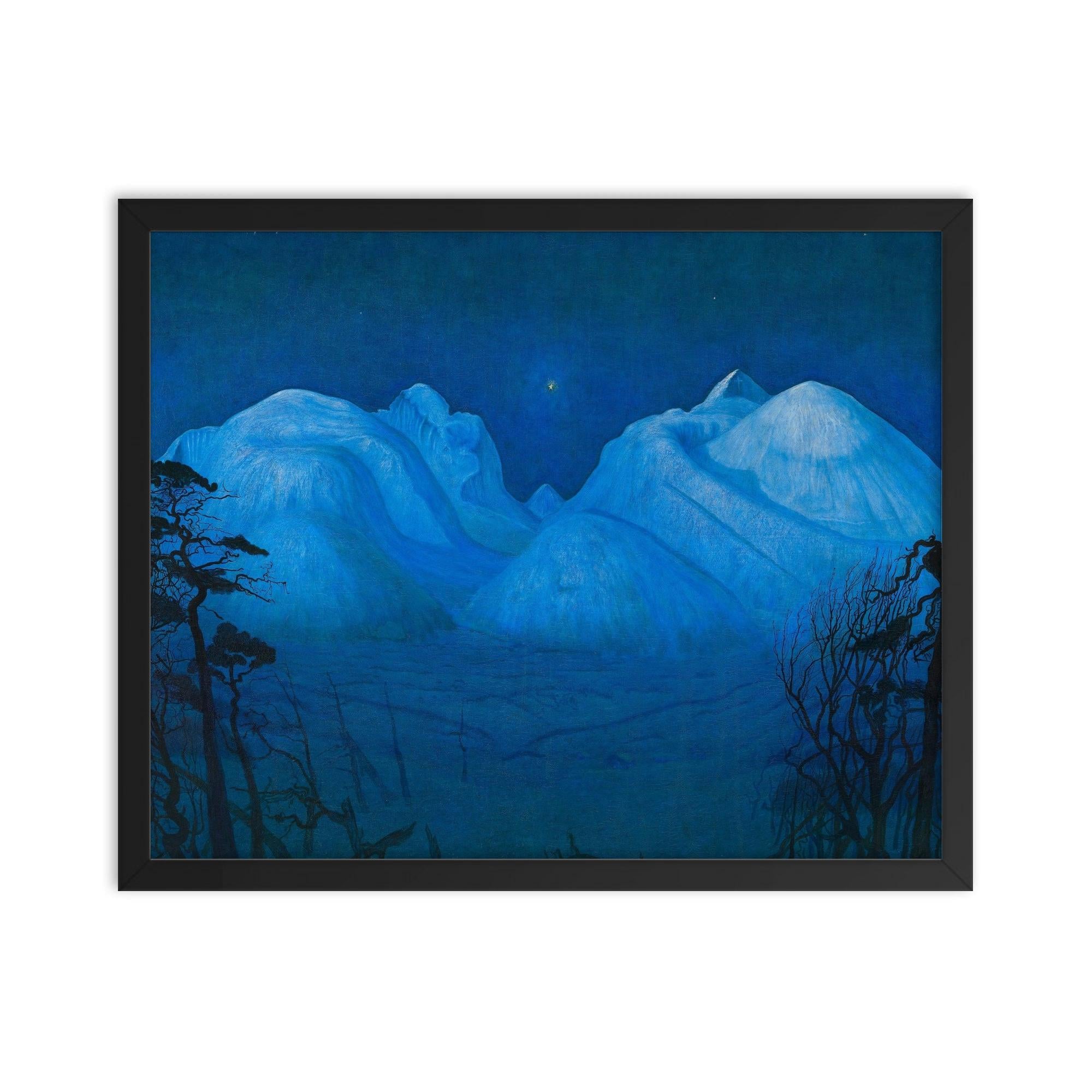 Bring effortless elegance and timeless Nordic style into your space with a stunning framed print of Winter Night in the Mountains by Harald Sohlberg (1914). This breathtaking piece of wall art transports you to the serene beauty of Norway’s winter nights—making it the perfect addition to your home, office, or creative space.