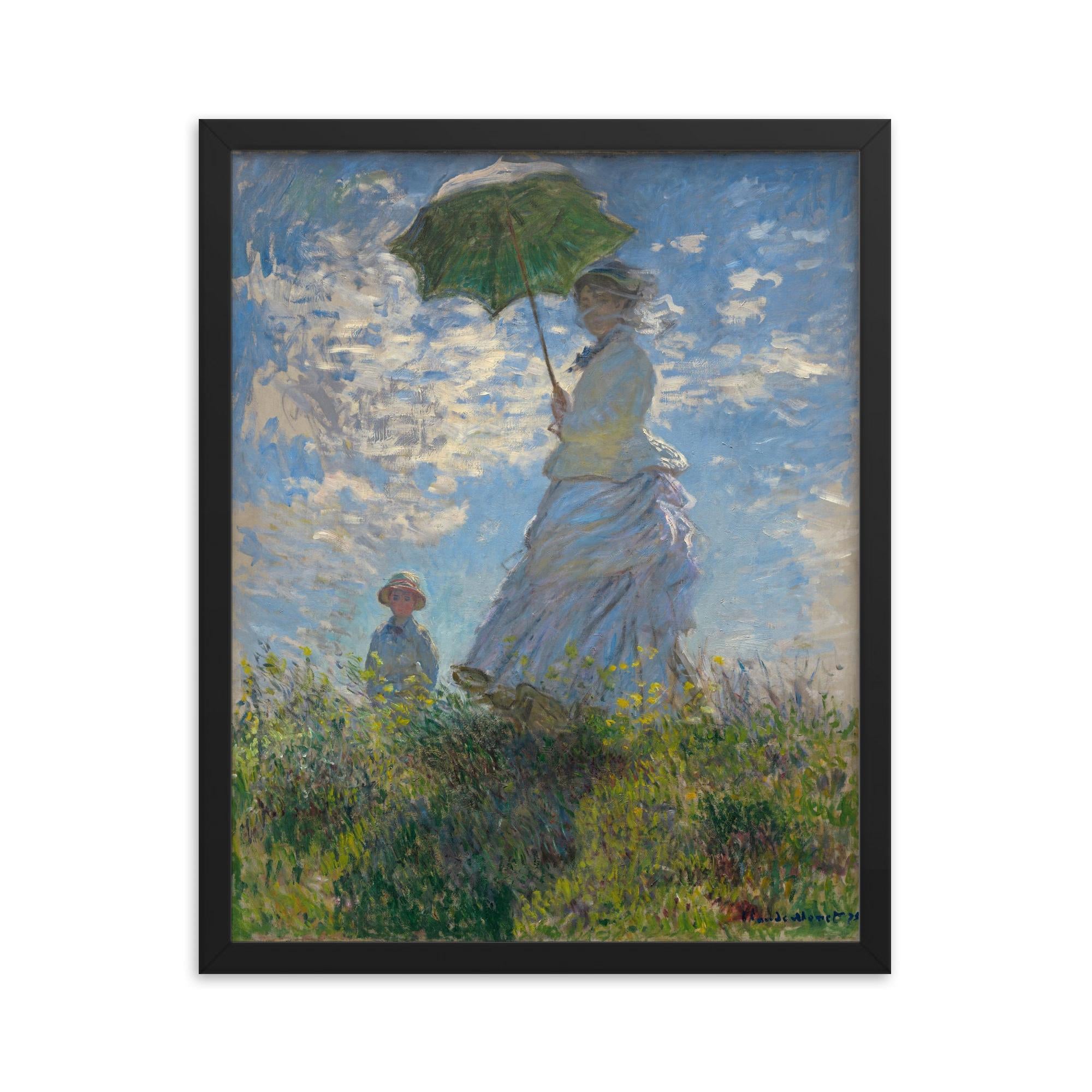 Capture the timeless beauty and elegance of Impressionist art in your home with our Framed Print: Woman with a Parasol by Claude Monet, 1875.