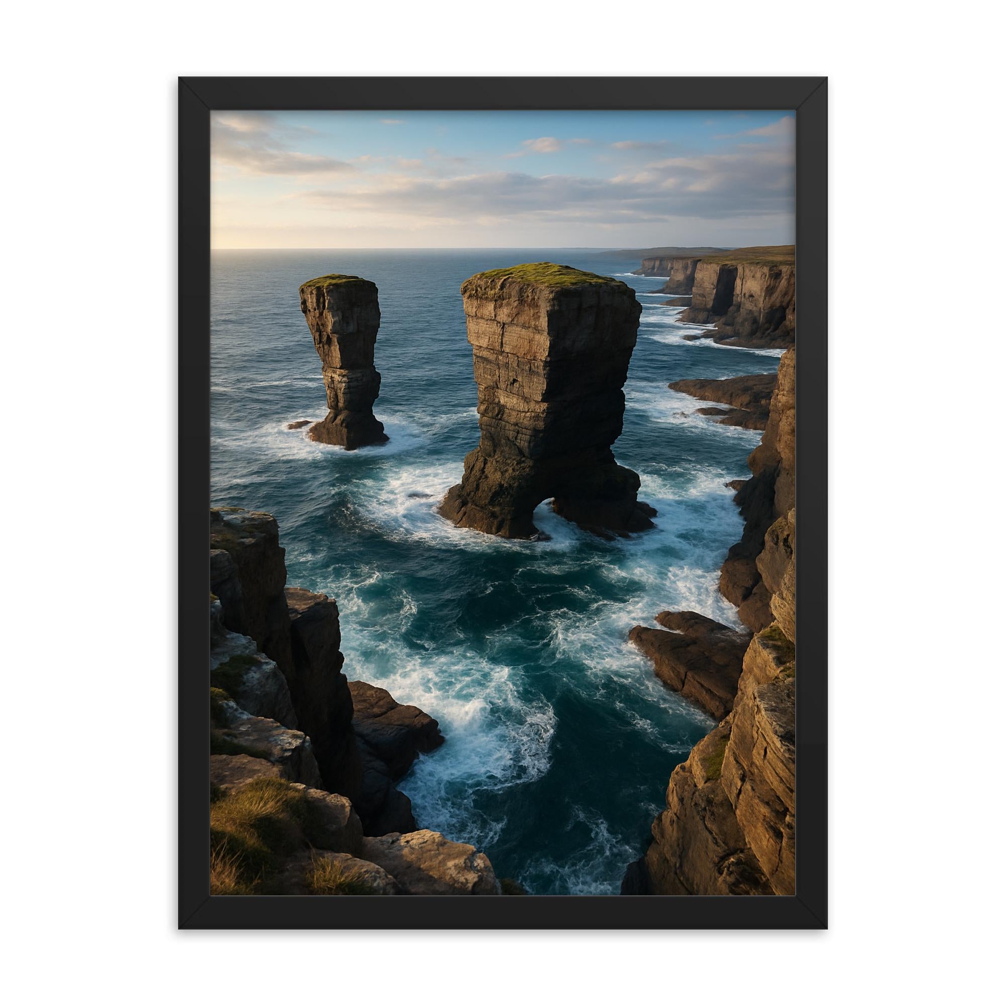 This expertly framed print captures a striking natural wonder, bringing coastal serenity and rugged elegance into your home or office.
