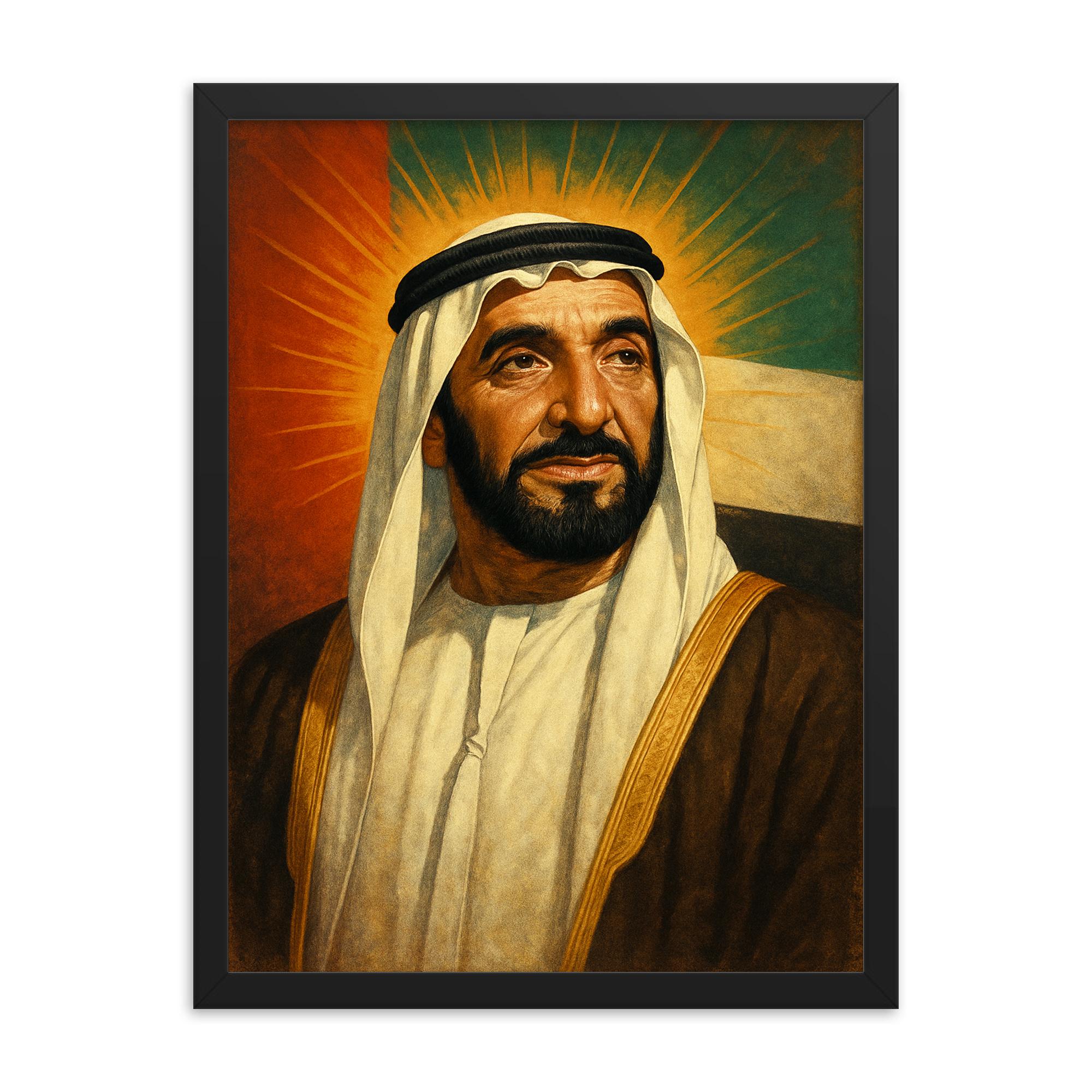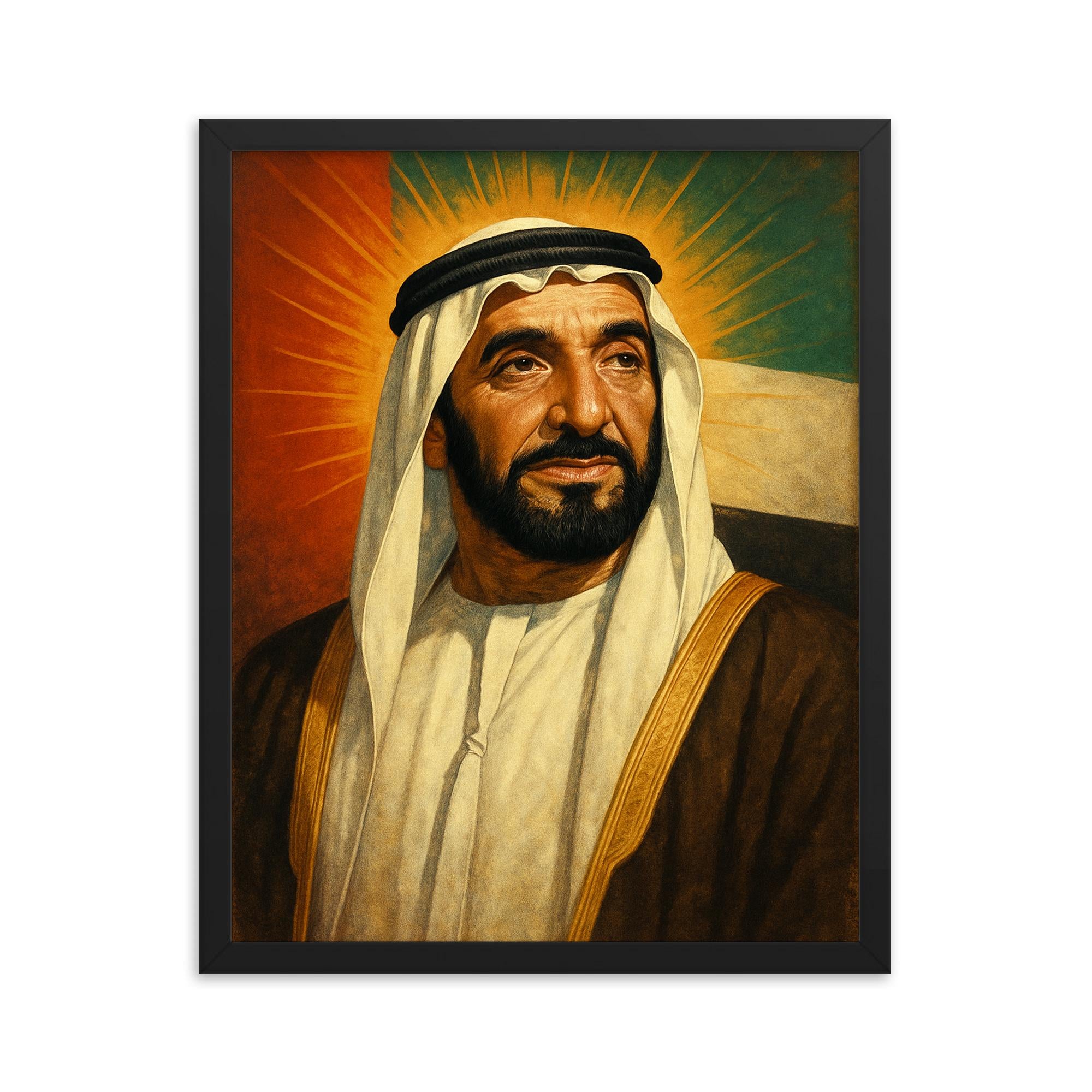 Whether you’re honoring your heritage, curating an inspiring workspace, or searching for a meaningful gift, this framed Zayed bin Sultan Al Nahyan print delivers both striking beauty and distinguished style.