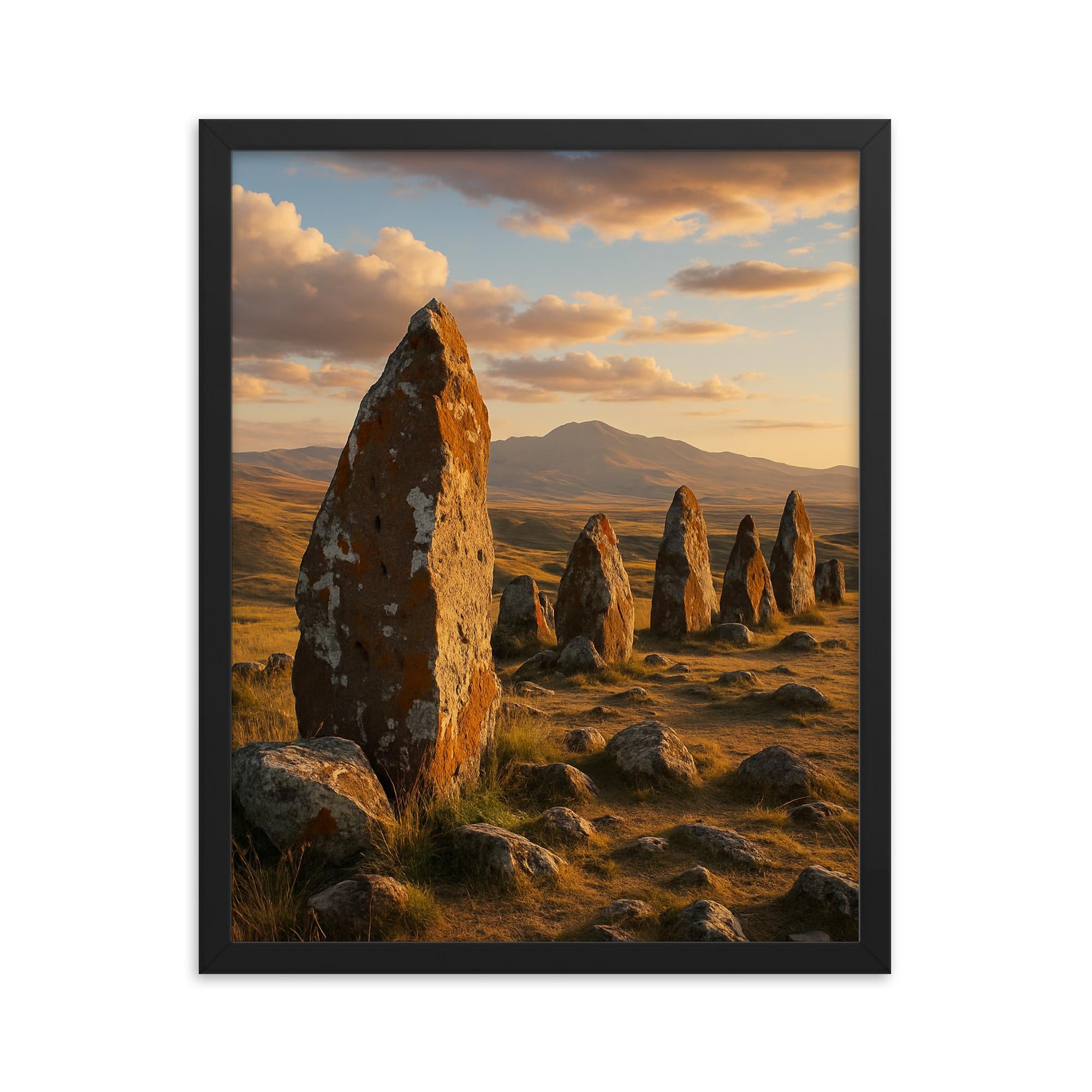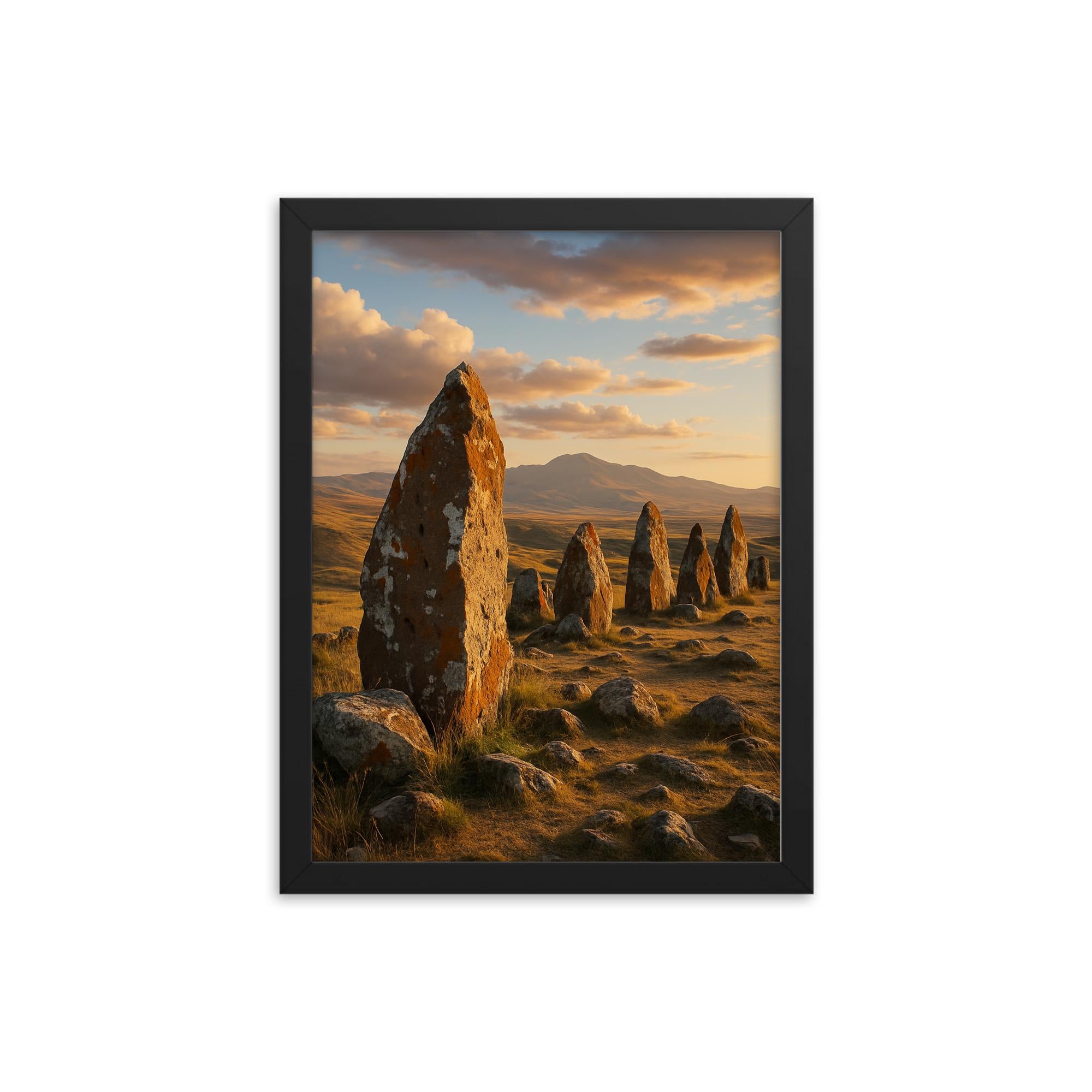 Elevate your living space with the timeless mystery and ancient allure of the Zorats Karer Karahunj Megaliths Armenia framed print.